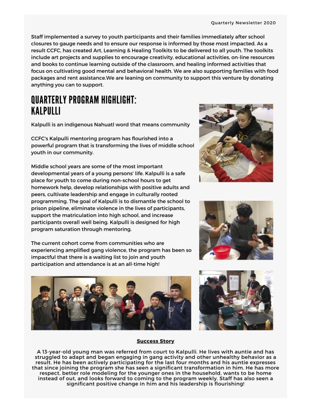 To create a pathway for our youth to discover sacred relationships with self, family, and community, to reduce violence and incarceration so that youth of color can reach their full potential.